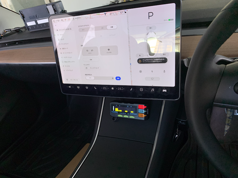 【XP900es】装着事例_TESLA Model3 岡部メーター商会本社にてTESLA Model 3にXP900esを導入いただきました。 今回も珍しい車種シリーズとなりました。まさに最先端、次世代の車両「テスラ・モデル3」です。車両側に従来型のスピードメーターなどの計器類が無く、中央のディスプレイに集約されて車内が非常にスッキリしているため、追加機器が悪目立ちし世界観を損なってしまうのを気遣ってか、表示部は中央ディスプレイ下、プリンタ部は運転席足元にひっそりと配置しています。 TESLA_M3_XP900es TESLA_M3_XP900es_PRINTER TESLA Model 3